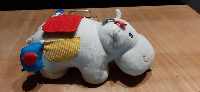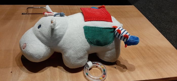 Hippopotame d'activité de la marque Oxybul. Votre bébé apprend ainsi les matières les sons, les mouvements et plein d'autres choses encore. En plus il est tout doux ! Très bon état !
