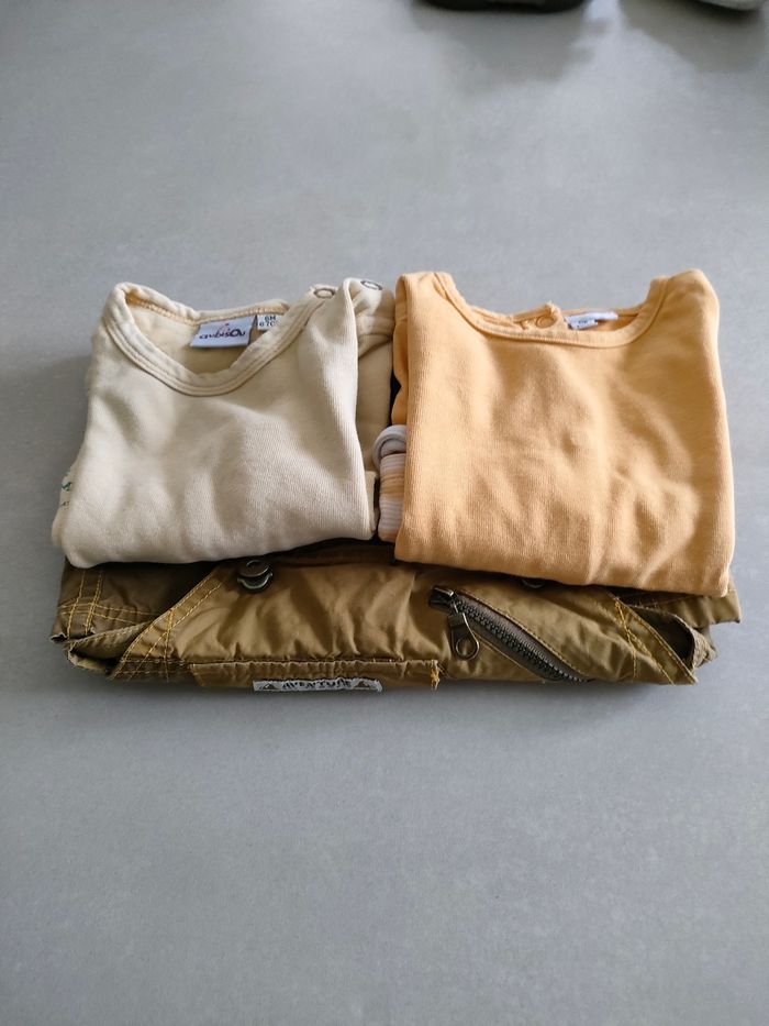 Ensemble : - salopette avec ouverture entre les jambes - 2 t-shirt manches longues 6 mois