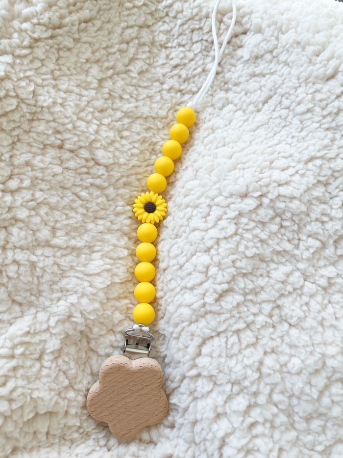 Attache sucette jaune à fleur