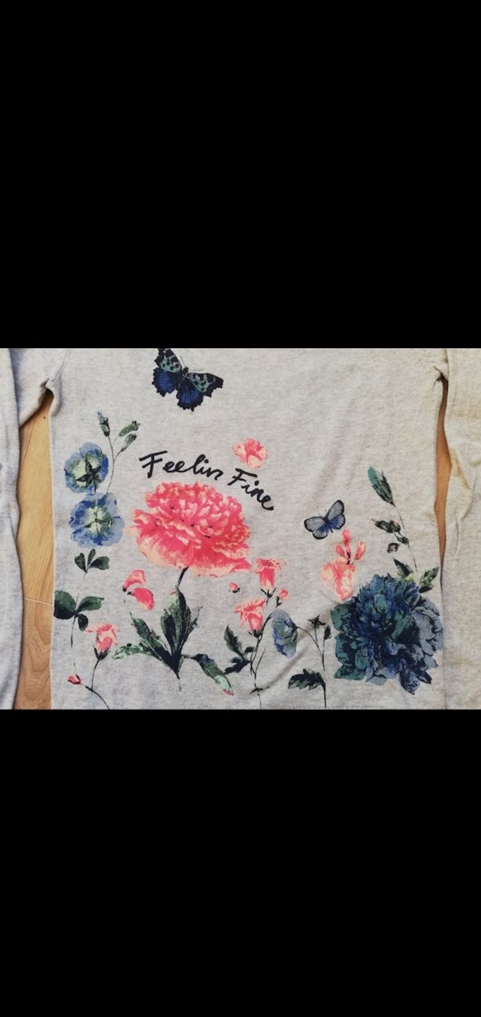 Pull fin coton gris motif fleuri, très bon état