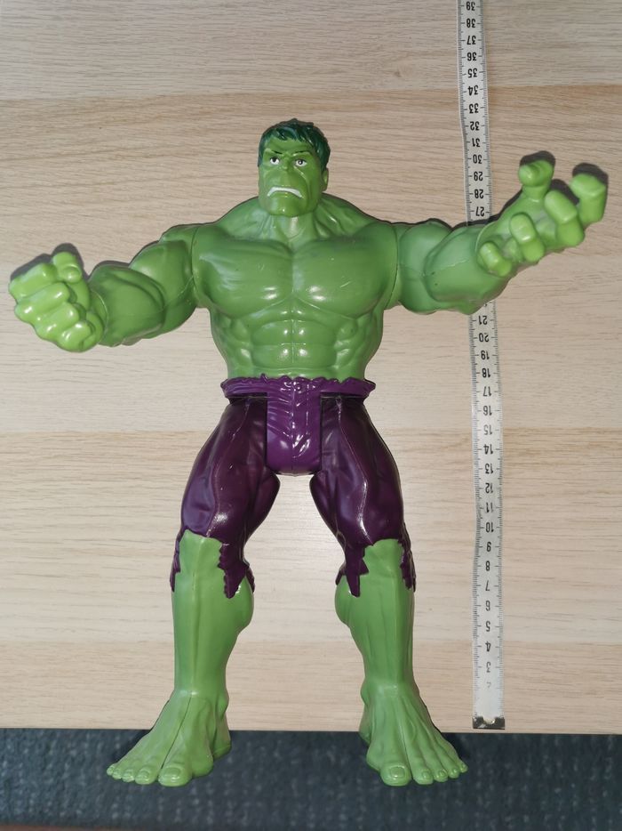 Bonjour Je vends cette figurine de Hulk Elle est en très bon état Elle mesure 31 cms Marque Hasbro