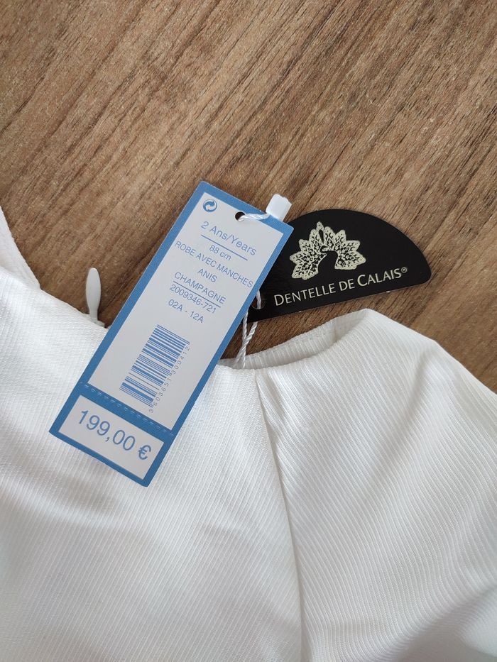 Robe de cérémonie en dentelle de calais Jacadi neuve avec étiquette. Prix d'achat 199€. Taille 2 ans