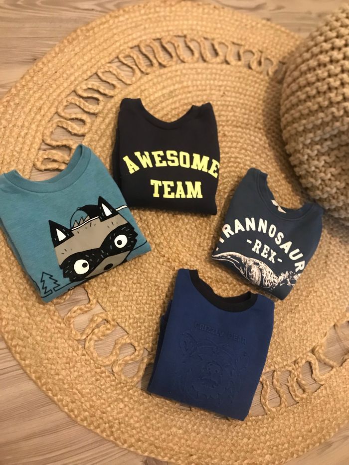 Lot 4 pulls en bonne état 1 h&m 1tex C&A Le 4 eme avec tête de lion état moyen pas tache seulement un peut usé étiqueté retirer mais taille 4 ans