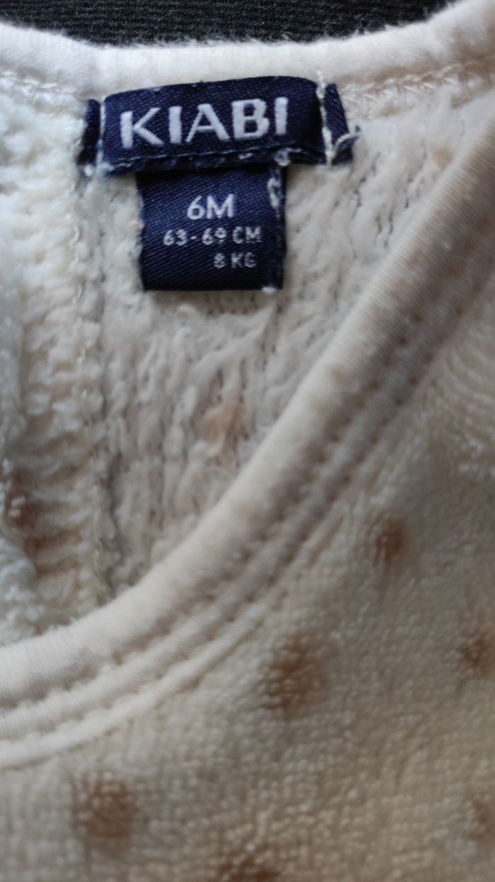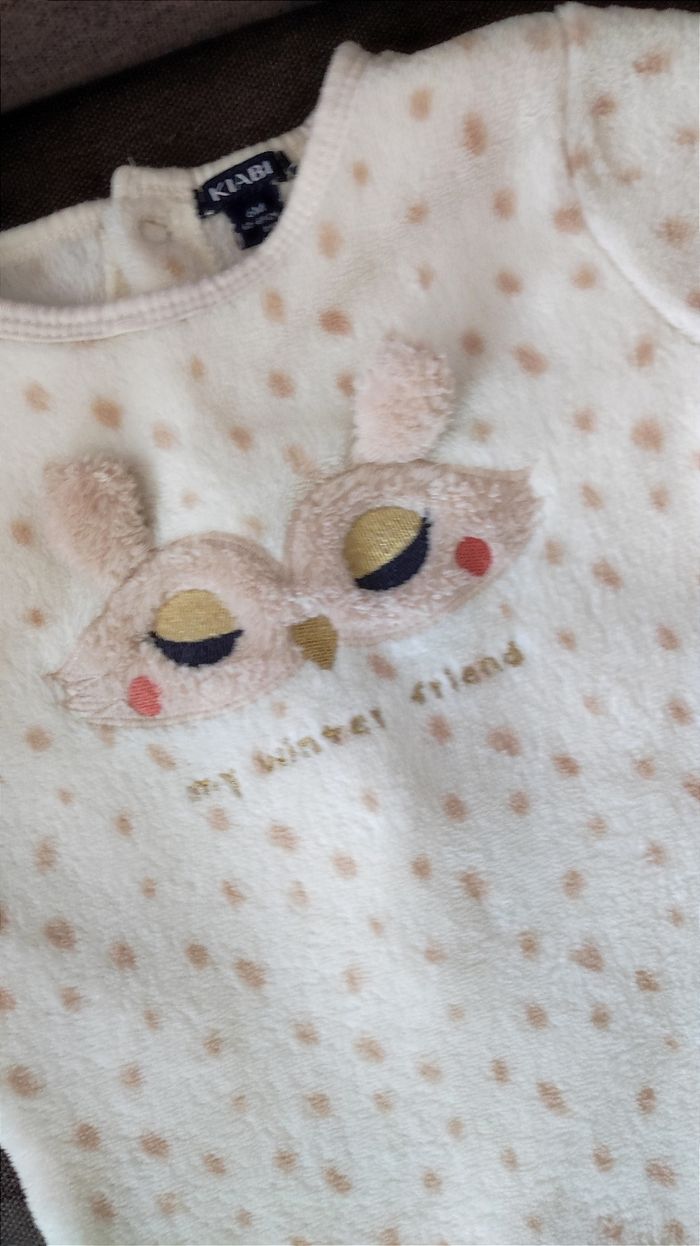 Vend pyjama polaire. Couleur écru avec des petits pois beiges. Utilisé mais pas de défaut. Comme neuf. Taille 6 mois.