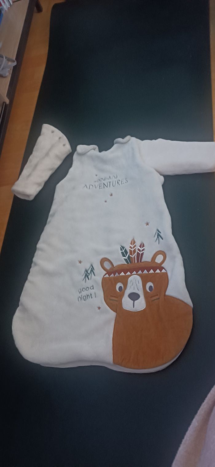 Gigoteuse unisexes taille 3-6 mois Cette gigoteuse est super car possibilité d'enlever les manches en fonction de la saison et aussi possibilité de choisir la taille en fonction de l'évolution de bébé