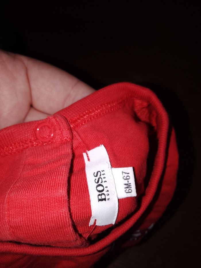 Bonjour je vends un t-shirt longue manche la marque Hugo Boss taille 6 mois 67 cm taille correctement bon état