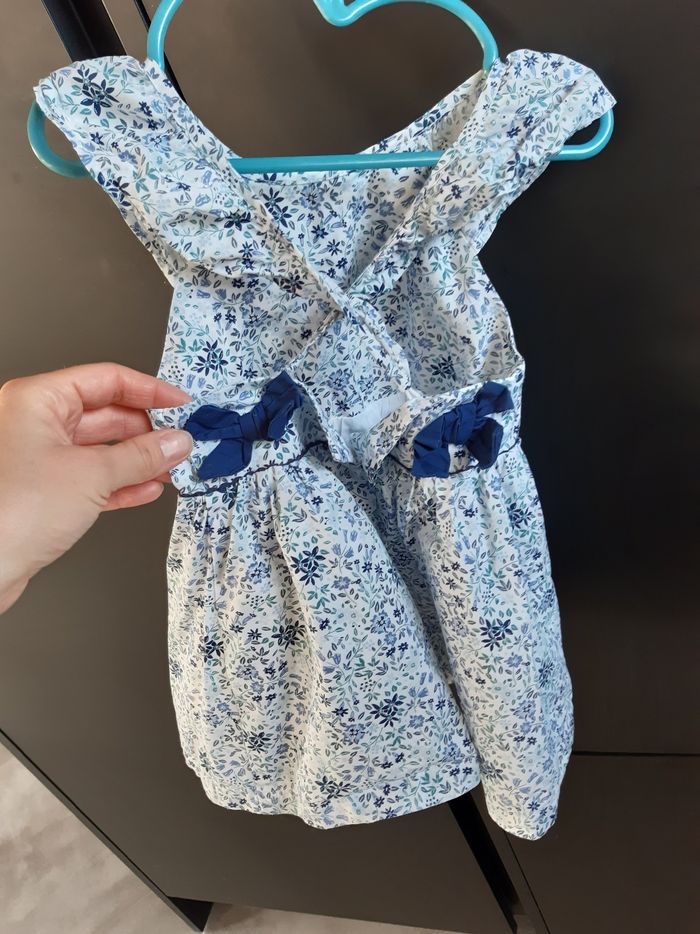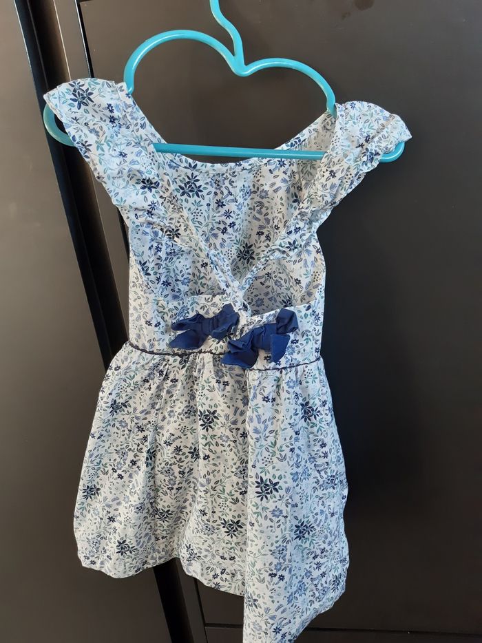 Jolie robe fleuries bleu. Portée 1 seule fois. Idéal pour une cérémonie.