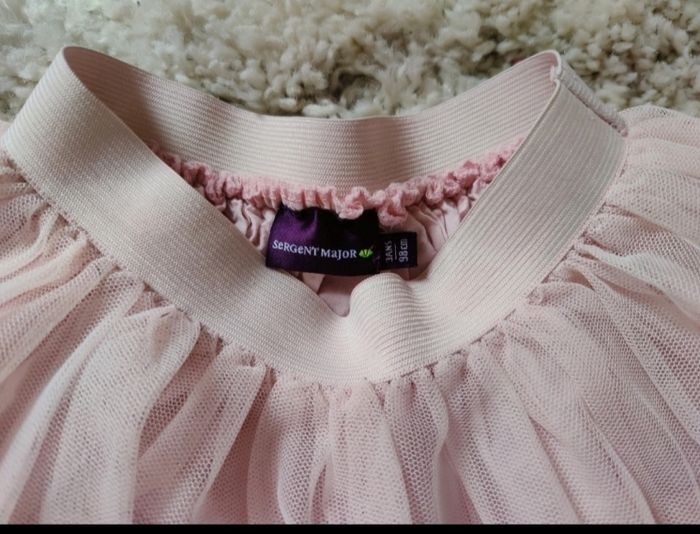 Jupe tulle courte rose pâle Détail broderies eprles sur le côté Marque sergent major 3 ans Bon état pas de tâches ni trou mais on peu voir comme un trait sur le tulle cf photo ( a peine visible mais je préfère le signaler )