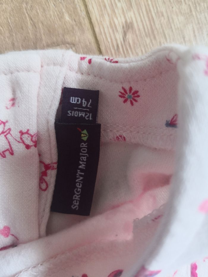 Robe Sergent Major 12 mois. Rose laisse avec petits dessins. Neuve, jamais portée mais sans étiquette car lavée une fois.