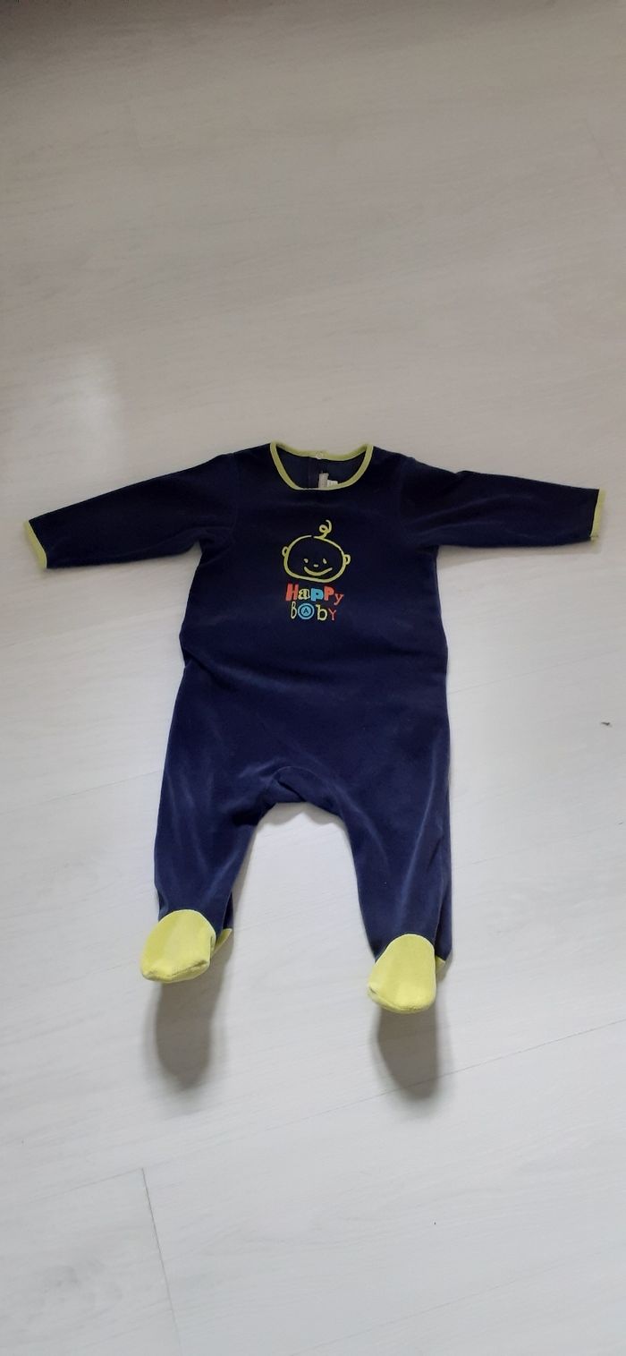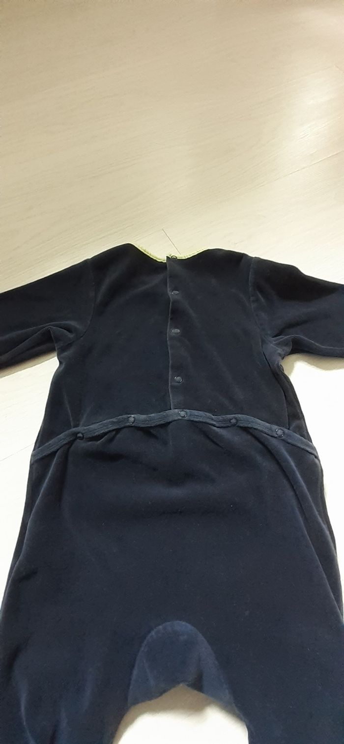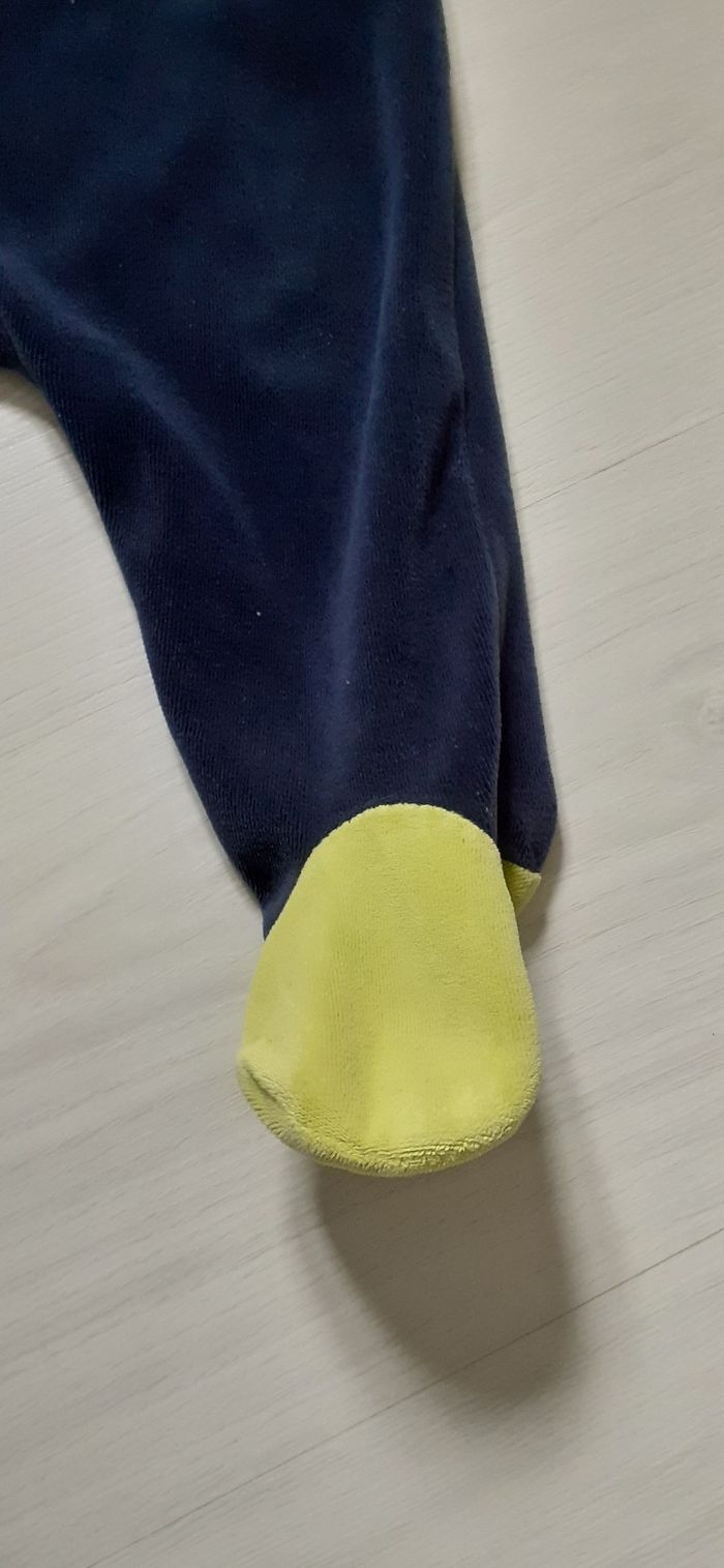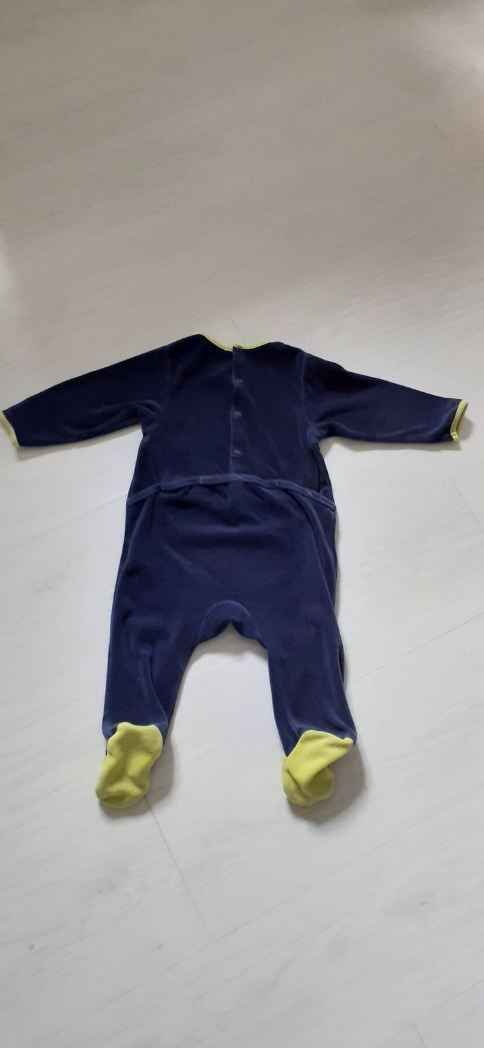 Grenouillère T 23 mois Marque ORCHESTRA Couleur bleu marine et vert pomme Attention pressions dans le dos Manches longues Pieds Motif devant Taille plutôt un 18 mois grand Très très bon état