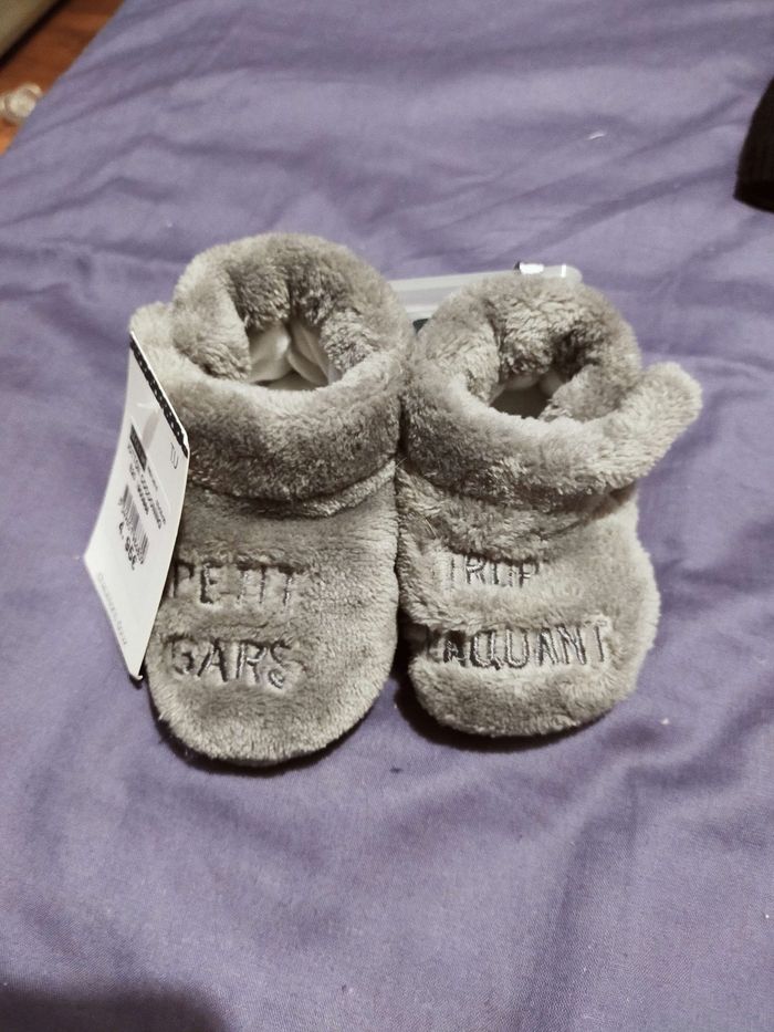 3 paires de chaussons moltonés + 1 bonnet petit bateau taille 0 à 9 mois
