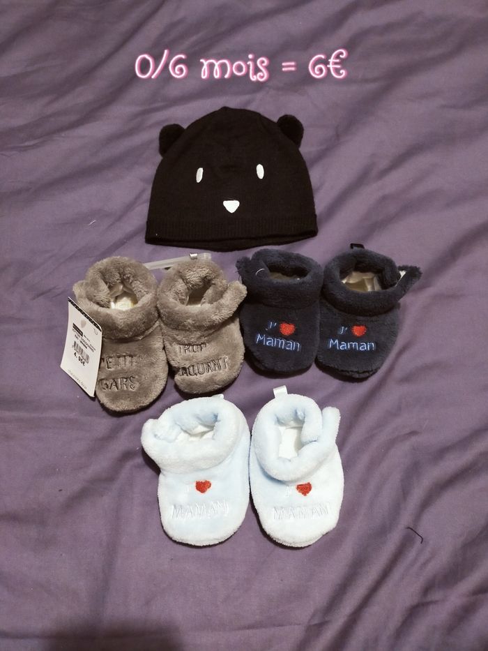 Lot de chaussons bébé+ 1 bonnet - photo numéro 1