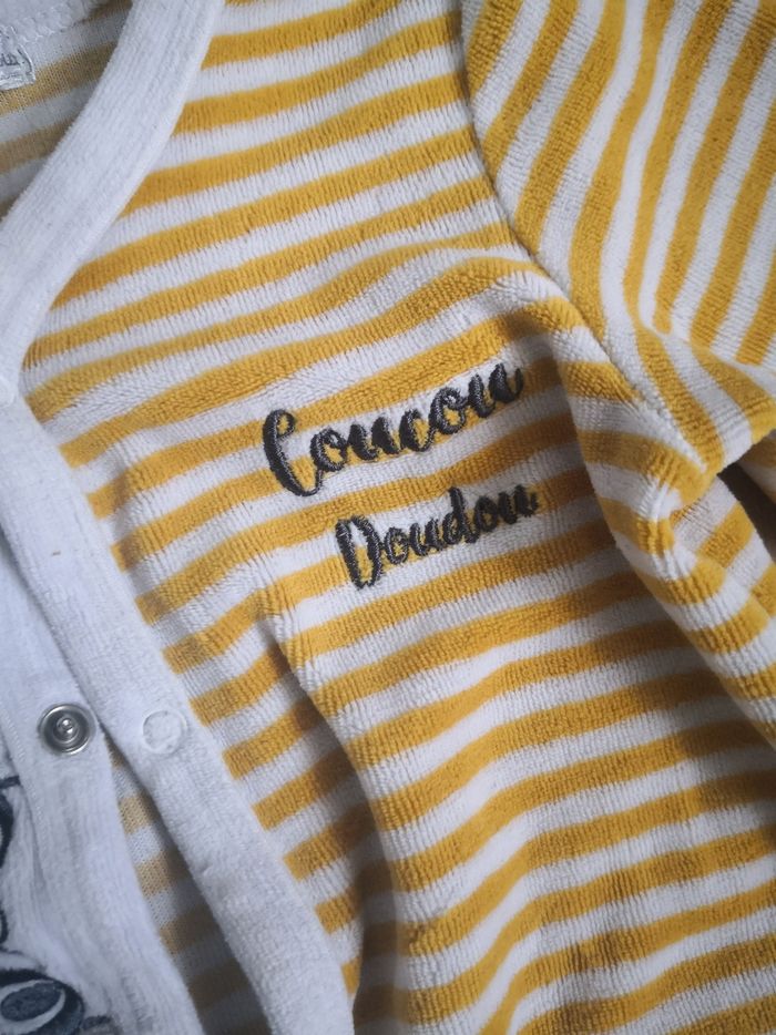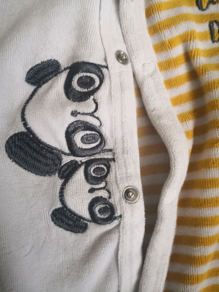 Pyjama velours blanc et jaune. Panda brodés. Taille 18 mois. Bon état.