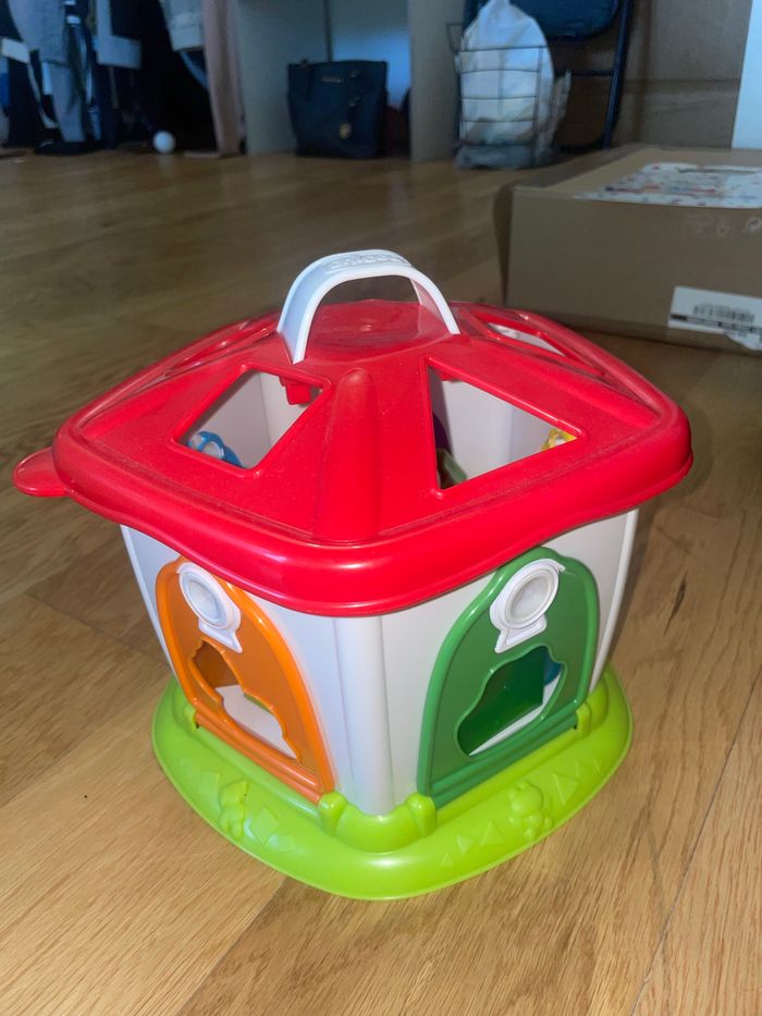 Chicco Cottage des Animaux 2 en 1 Trieur de Formes, Cube d'Activités Bébé à Niveaux de Difficulté Croissants, avec Touches Colorées et Formes en Plastique