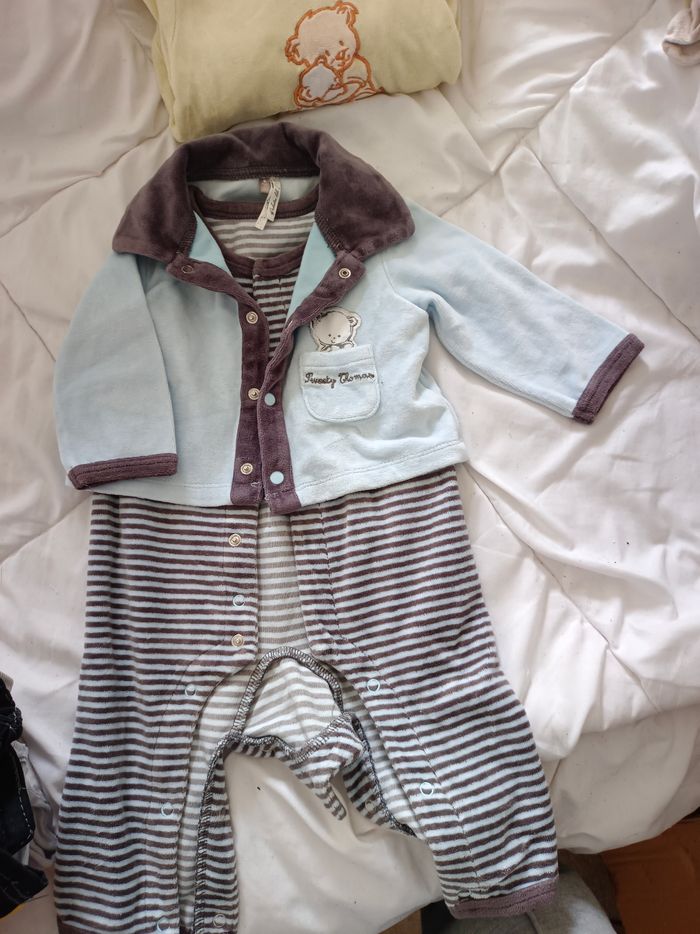 Bonjour vend lot de 4 pyjama hiver garçon 6 mois Ouverture facile par derrière et un au niveau de l'entrejambe parfait pour changer les fesses de bébé 8 € les quatre possibilités de le vendre à l'unité pour 2 € pièce