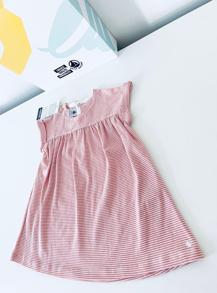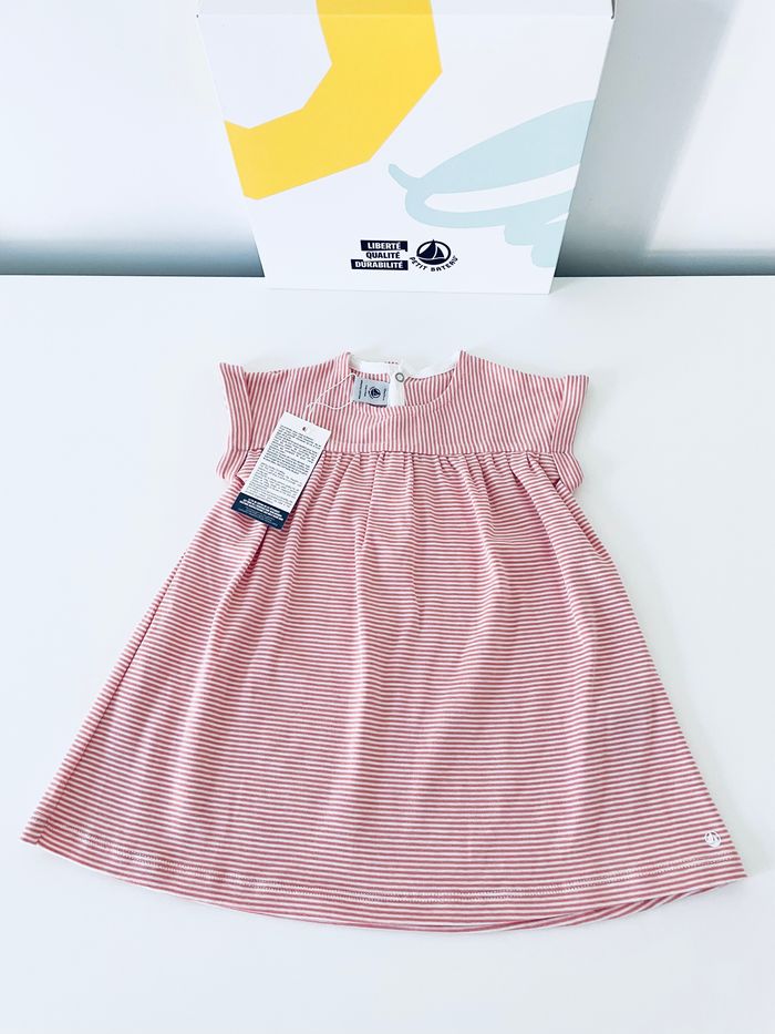 Magnifique robe Petit Bateau, taille 12 mois. Robe confortable, très agréable à porter par bébé. Article neuf avec étiquette.