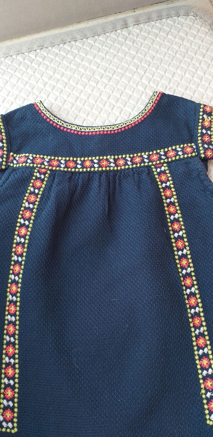 Robe detavec motif. Fermeture dans le dos par boutons.