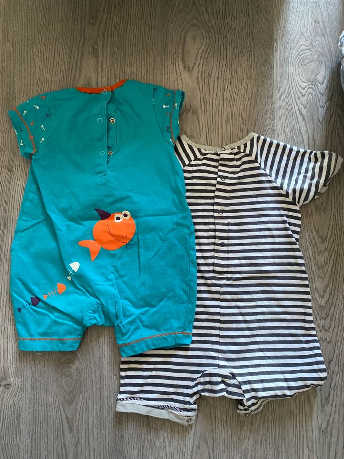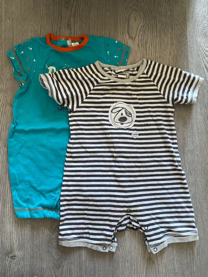 Lot de 2 combis 12 mois Fermeture pressions Portées mais en bon état général Envoi rapide et soigné