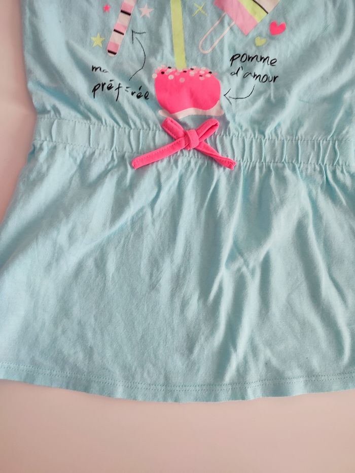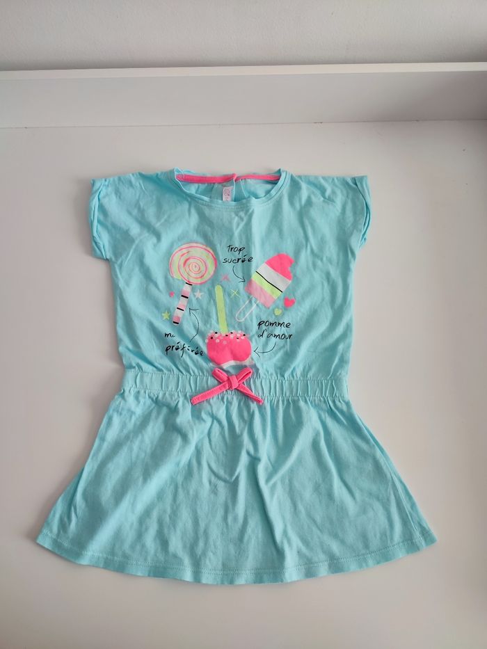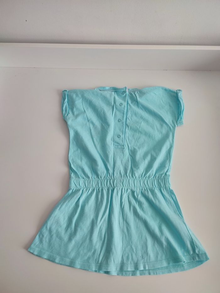 Robe bleu motif glace Taille 24 m En bon état car petite tâche de décoloration sur le bas a l'avant voir photo très légère