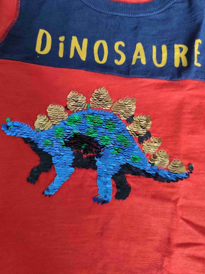 Tee-shirt manches longues avec motif "paillettes" Qui change de couleur selon le sens. Un petit bout de couleur est légèrement parti sur les manches