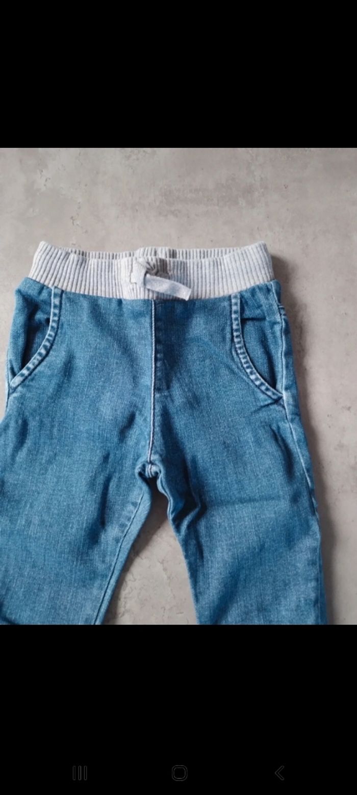 Jeans garçon. Élastique à la taille et aux pieds. Nœud d attache. Deux poches. Coupe droite. Taille 12 mois. Pour voir tous les vêtements de la même taille le lien dessous #emivet12mois