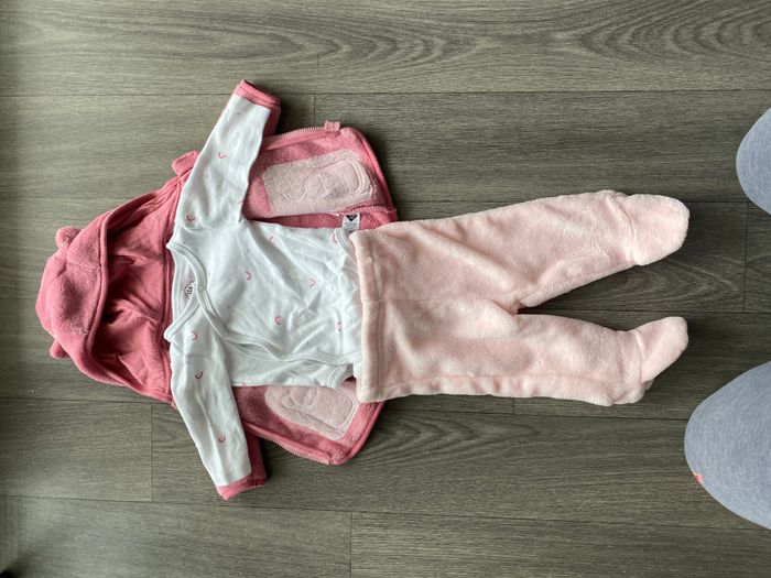 Pyjama 3 pièce avec un bodie, une veste toute douce est un bas de pyjama jamais porter sauf le bodie quelque fois
