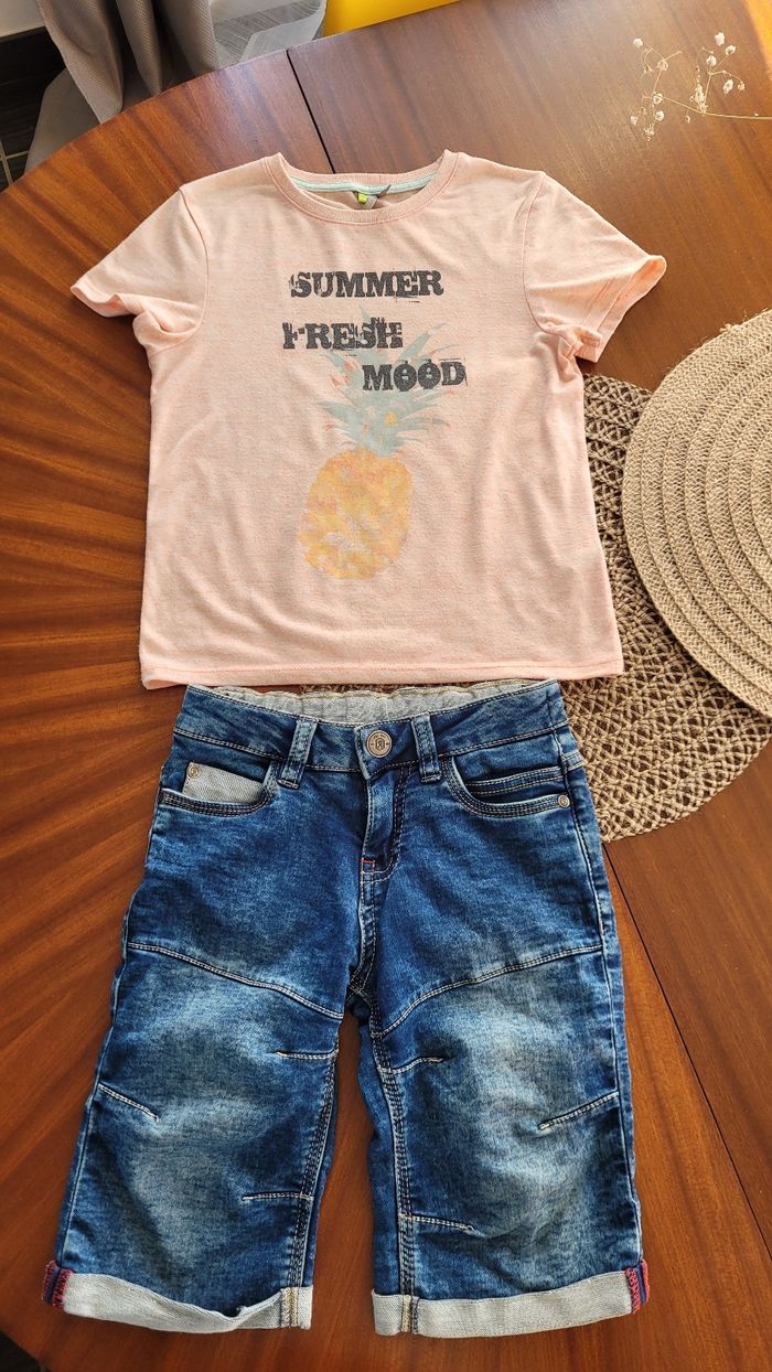 Short Jean stretch et t-shirt orchestra 8 ans - photo numéro 1