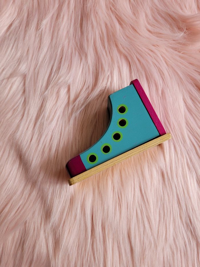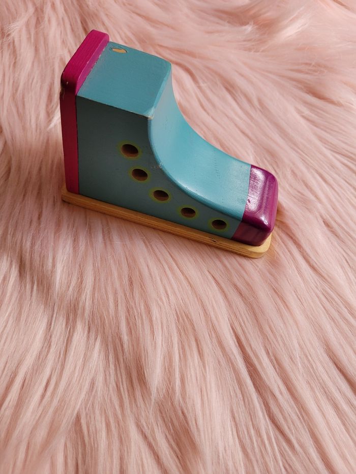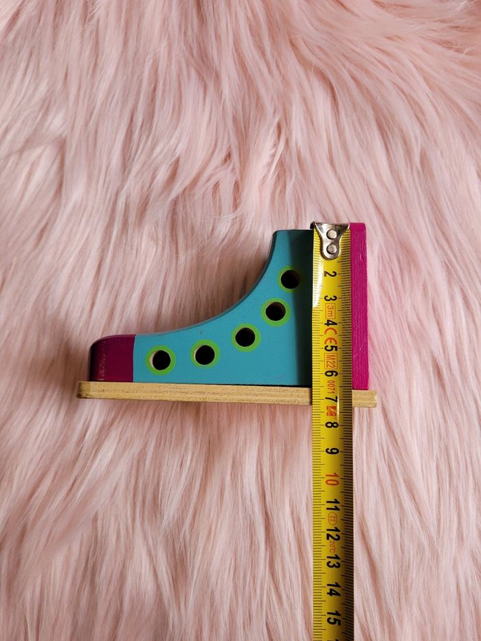 Chaussure en bois pout apprentissage lacet Un léger manque de peinture mais n'empêche en rien l'activité ludique