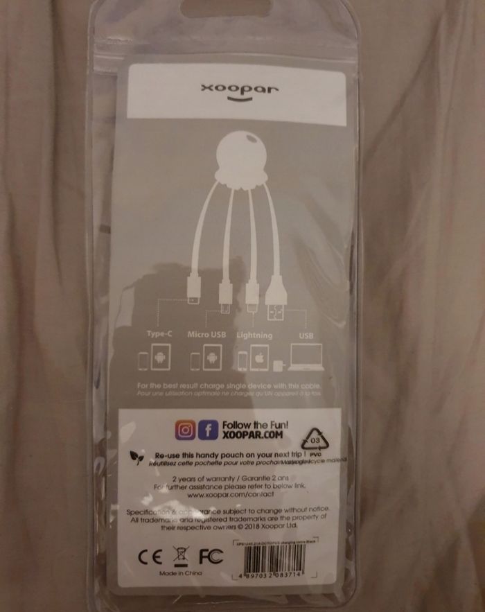 Multi cable Octopus. Neuf, jamais servi, encore dans son emballage