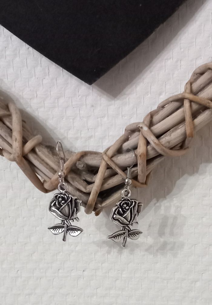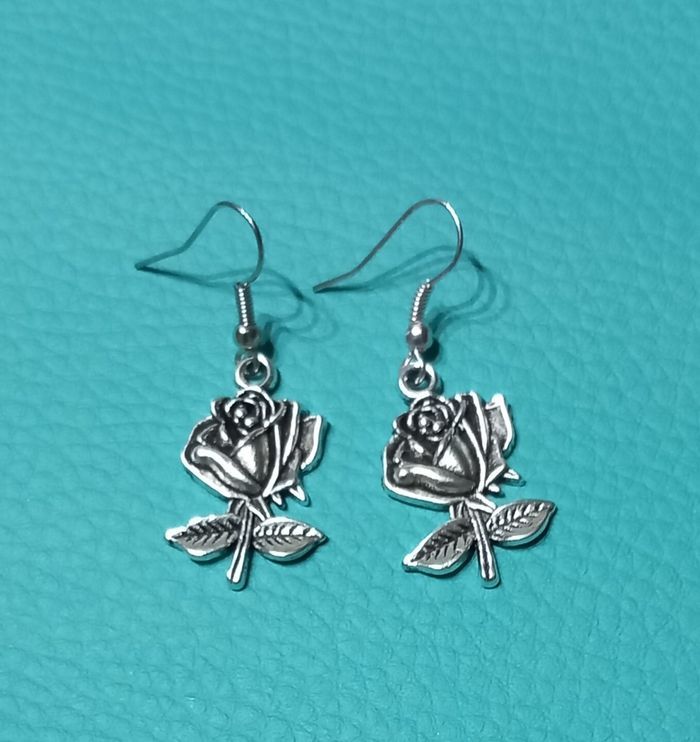 Réalisation d'une paire de boucles d'oreilles se son dès model unique d'une rose en argent Création fait main Envois rapide