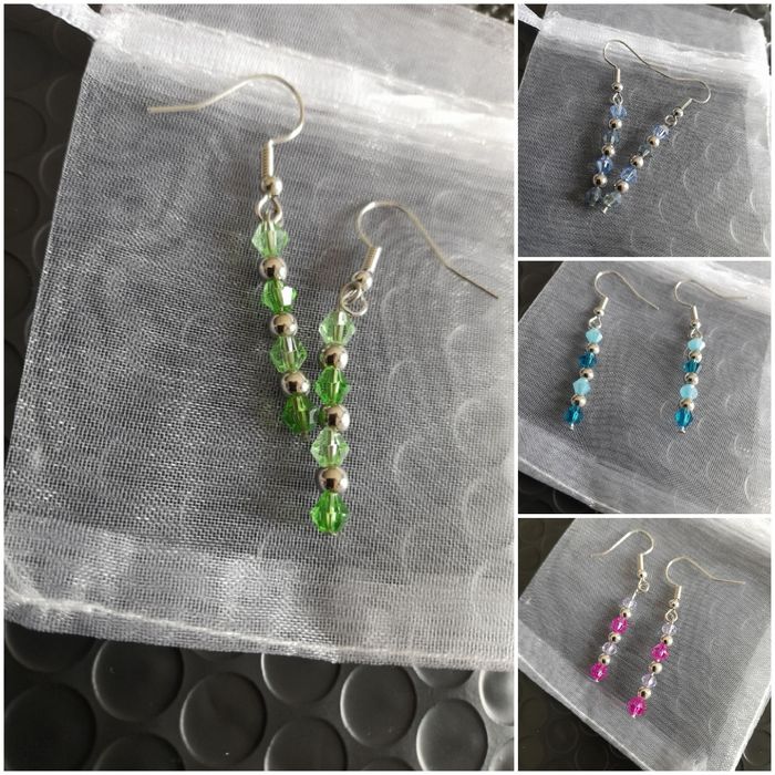 Boucles d'oreilles pendantes avec perles de couleurs au choix. Fait main ✋par mes soins :) 6€ la paire au choix N'hésitez pas à me contacter pour toutes demandes complémentaires
