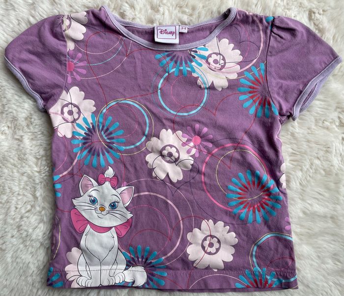 Tee shirt à manches courtes de la licence Les Aristochats de Disney Taille 3/4 ans Petites traces sur le motif (voir photo) Occasion, bon état