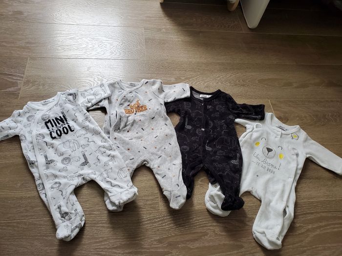 Lot de 4 pyjamas. Taille 1 mois. Bon état.