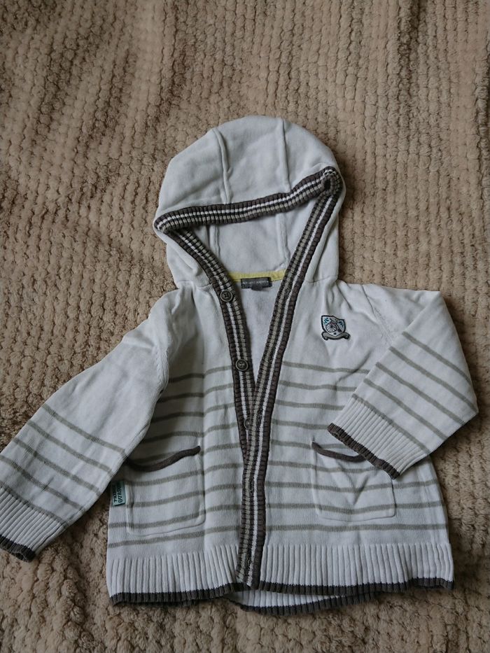 Adorable gilet à capuche 100%coton. Idéal mi saison. Poche et écusson sur la poitrine. Taille 18 mois. Très bon état