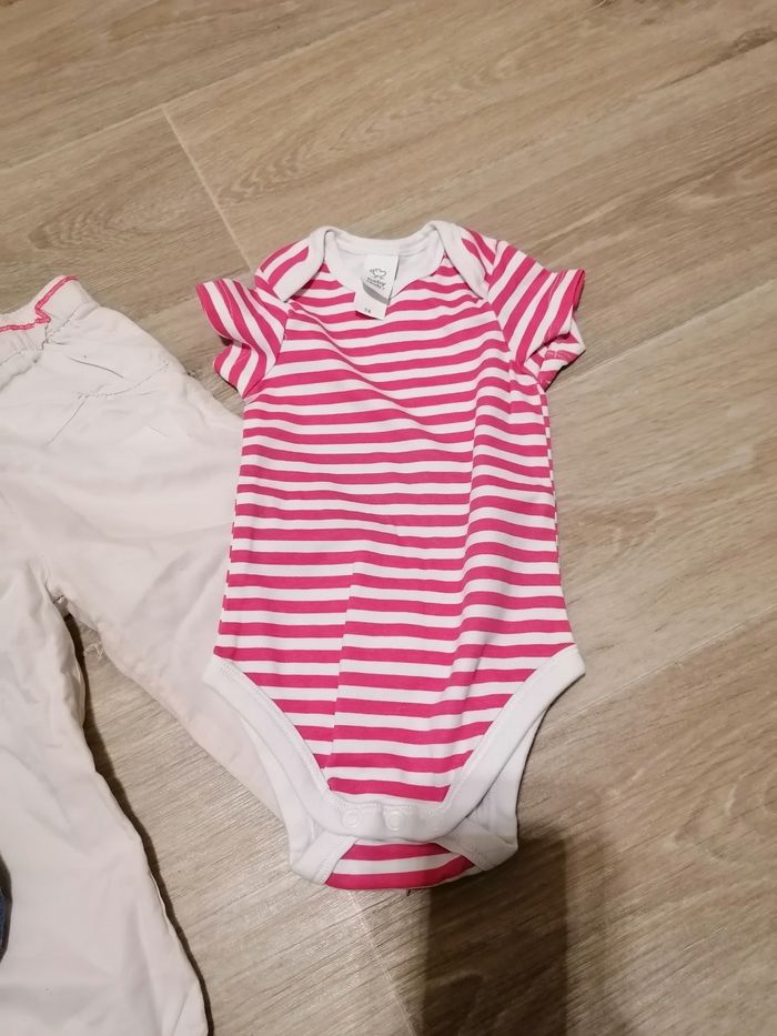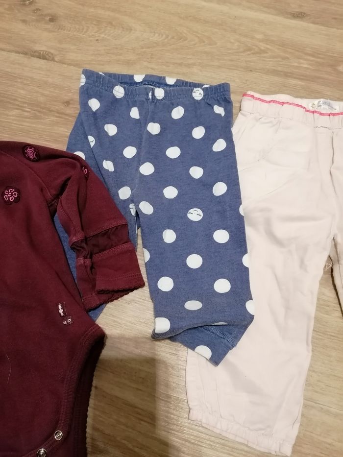 Body rayures : Baby club. 74 Panralon blanc : Kitchoun. 12 mois Legging bleu : Petit béguin. 12 mois Body bordeaux : 12 mois