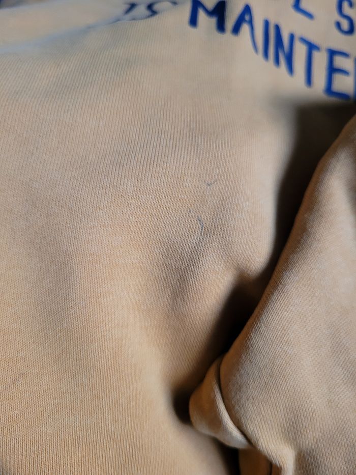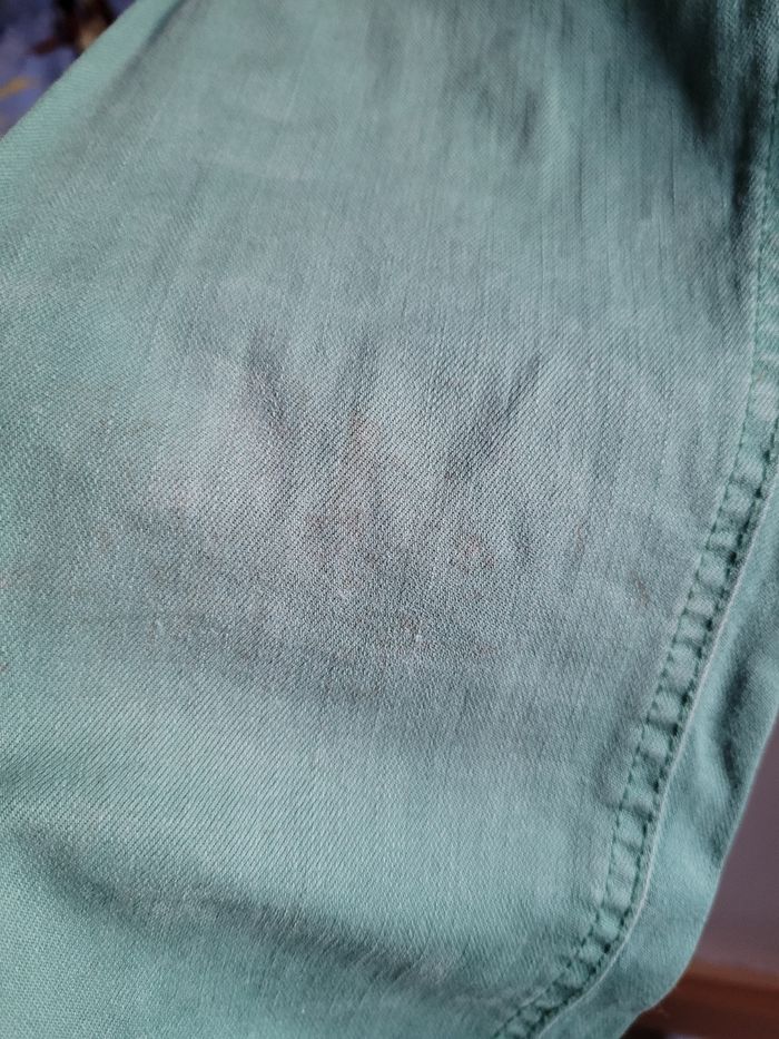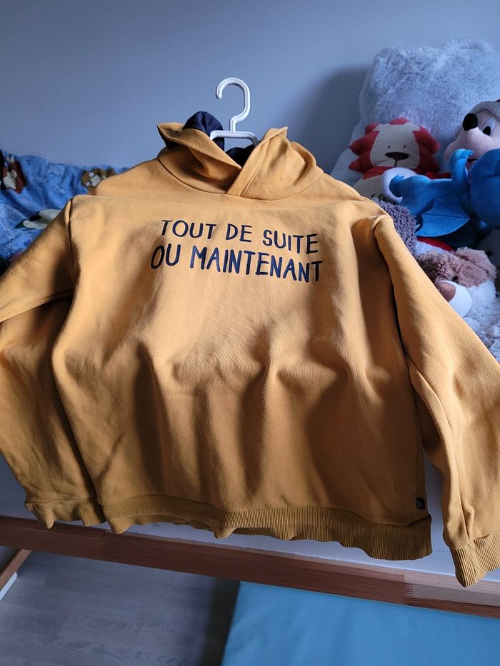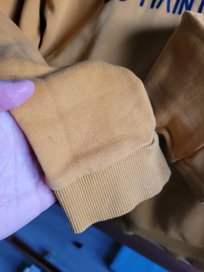 1 jeans slim kiabi bon état 1 jeans slim okaidi genoux tâcher 1 sweat okaidi moutarde petites tâches sur les bouts des manches 1 coût de billes devant