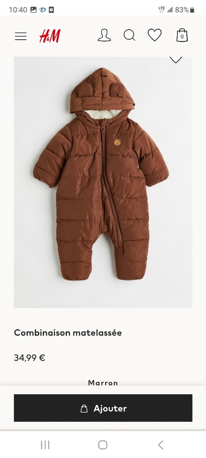 Combinaison matelassée 6 moins. Excellent état, car très peu portée (cause doublette)