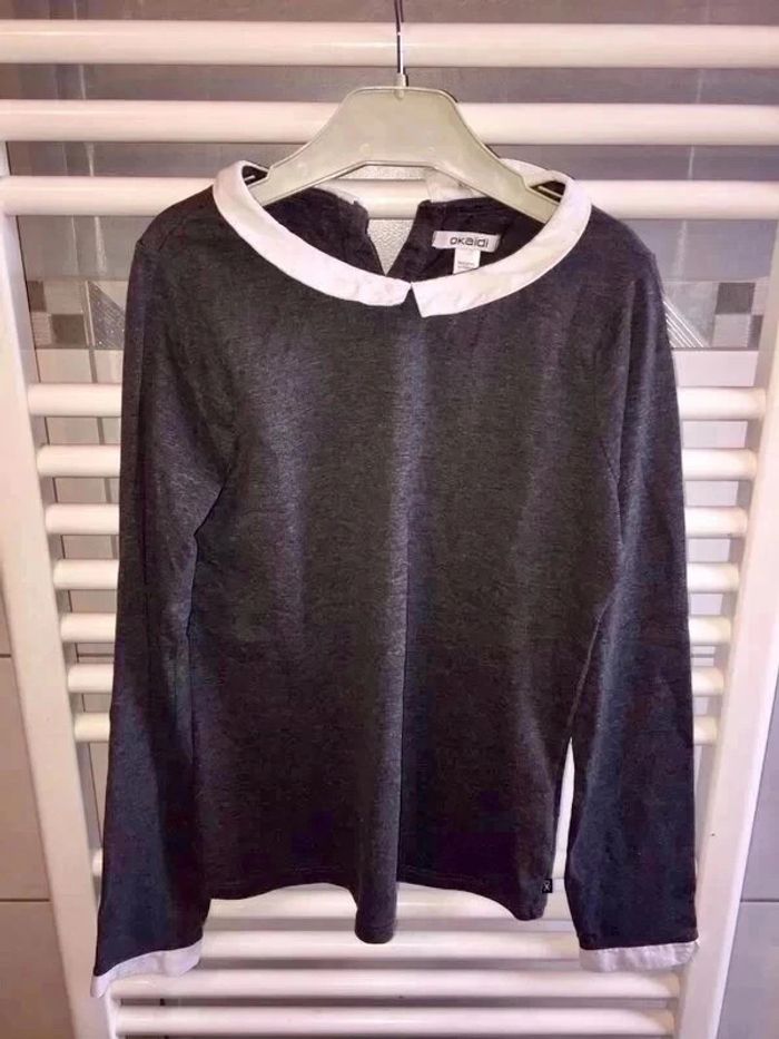 T shirt gris à col claudine taille 10 ans de marque Okaidi en parfait état à 5 euros