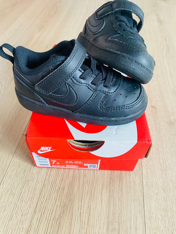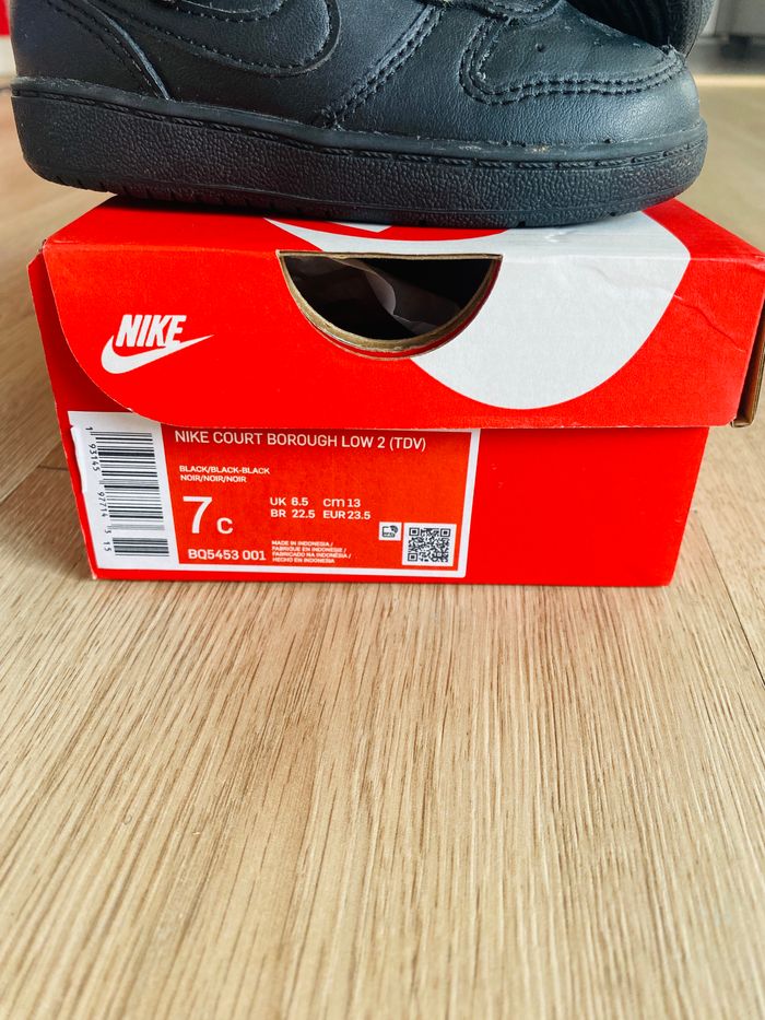 Basket Nike original Noire, taille 23,5 Portées 1x Modèle: Nike court borough low 2 Fermeture 1 scratch/ lacets intégrés Modèle mixte Pour plus d’informations n’hésitez pas à me contacter Envoi rapide et soigné 24/48h