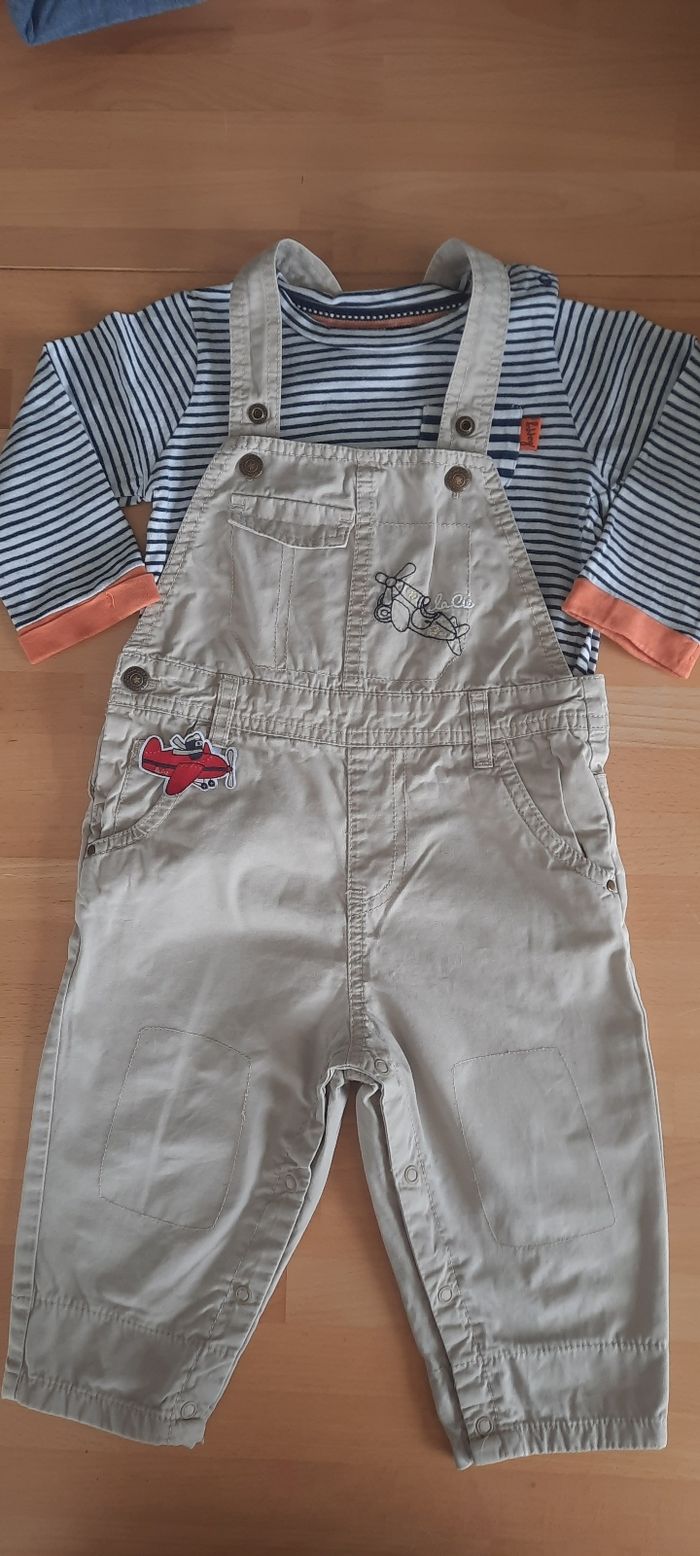 Salopette 18M et teeshirt marinière 18M