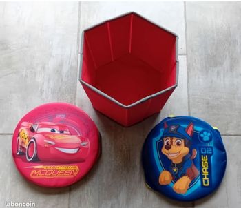 - Grand coffre à jouets à roulettes, modèle « petite sorcière » de chez Zara Home super solide, de qualité et ultra pratique car se déplace en toute facilité avec ses roulettes, on peut y ranger doudous, poupées, livres…… ou autre.