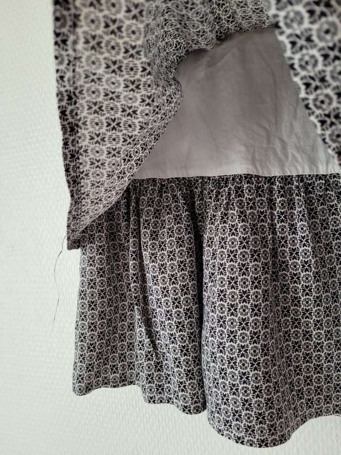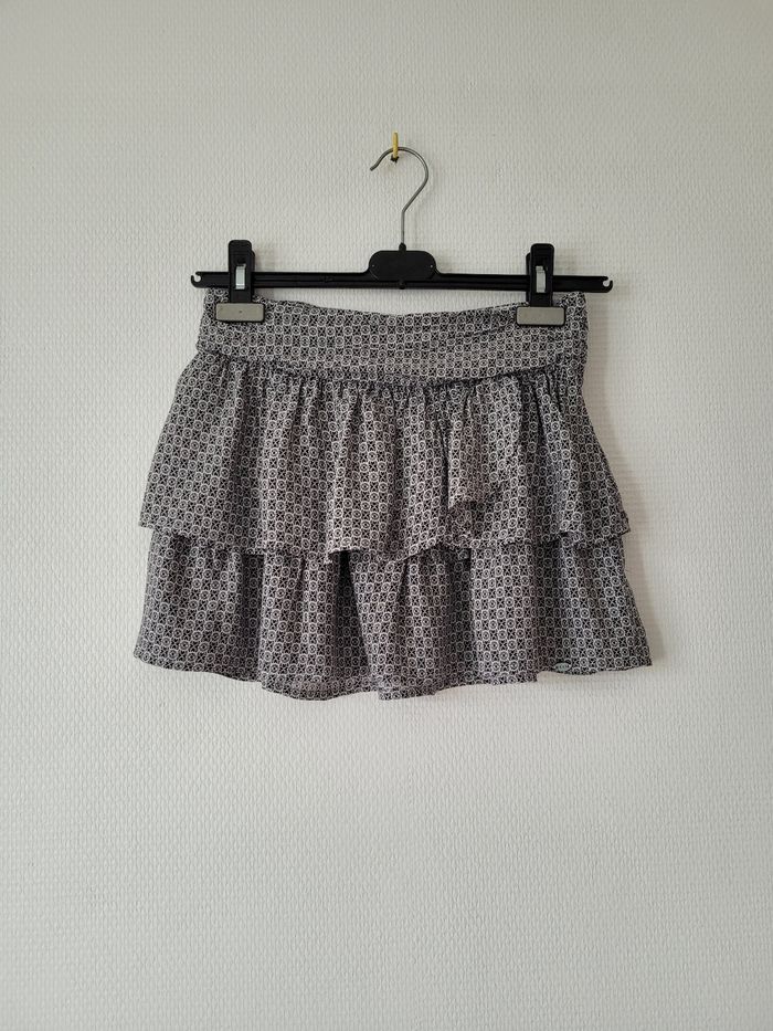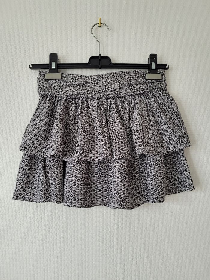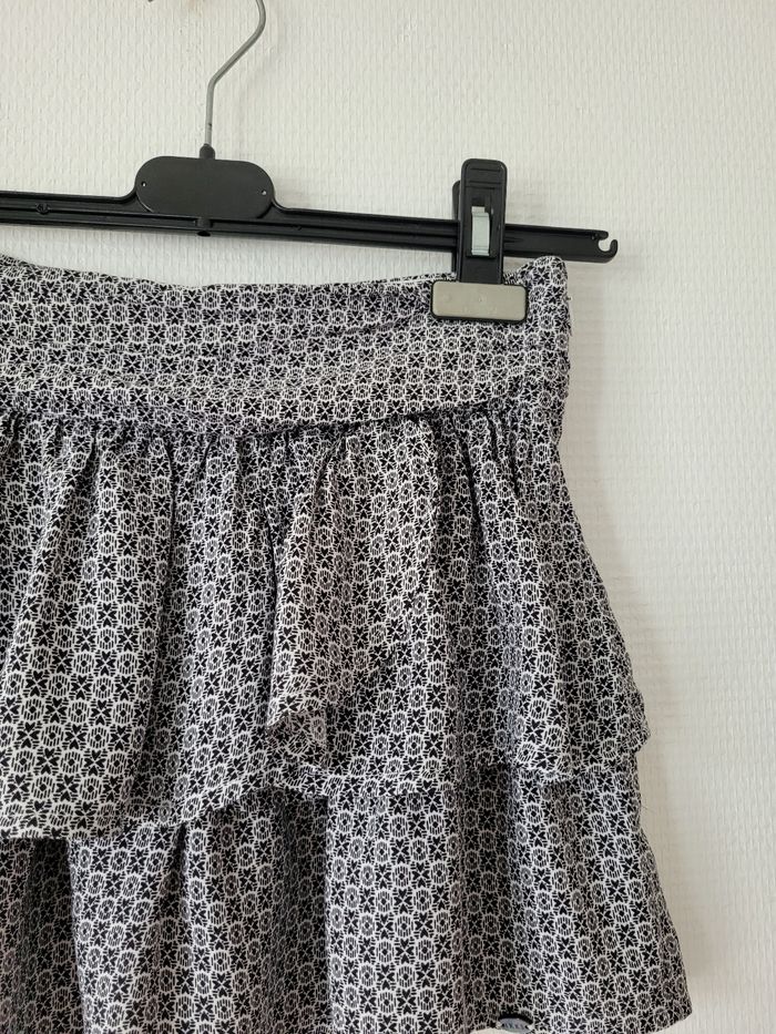 Jupe courte à volants de marque IKKS taille 10 ans Imprimé blanc et noir Taille réglable 100% viscose Doublure 100% coton En très bon état
