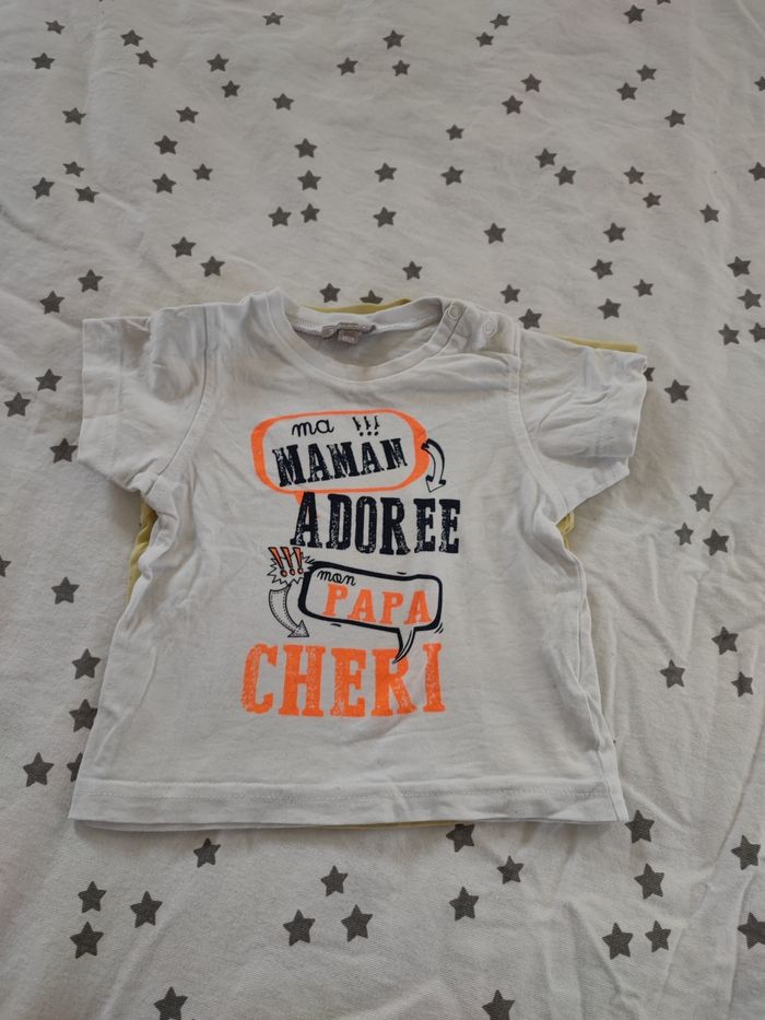 Lot de 2tee shirt Grain de blé 6mois ouverture au niveau de la tête cf photo N'hésitez pas à aller voir sur mon dressing, il y a d'autres articles de cette taille. Réductions activé sur lots