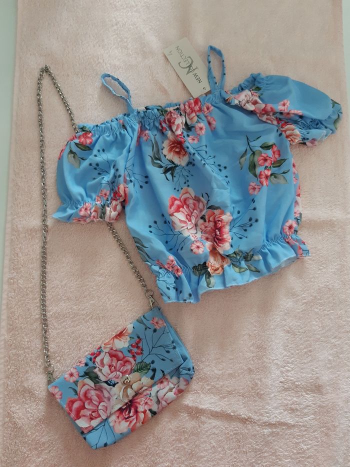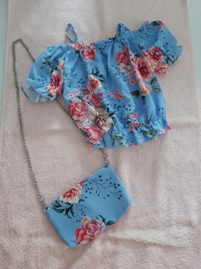 Haut bleu à fleurs + petit sac - photo numéro 1
