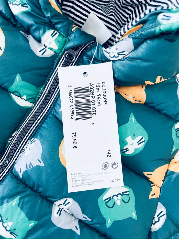 Magnifique doudoune Petit Bateau, taille 12 mois. Article neuf avec étiquette. Prix d’achat 80€.