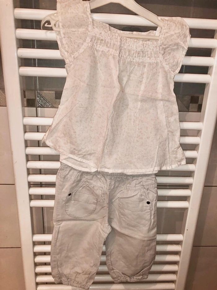 Ensemble pantalon à taille élastique et bas élastiques,blouse de marque Kidkanai taille 2 ans en tbe à 5 euros