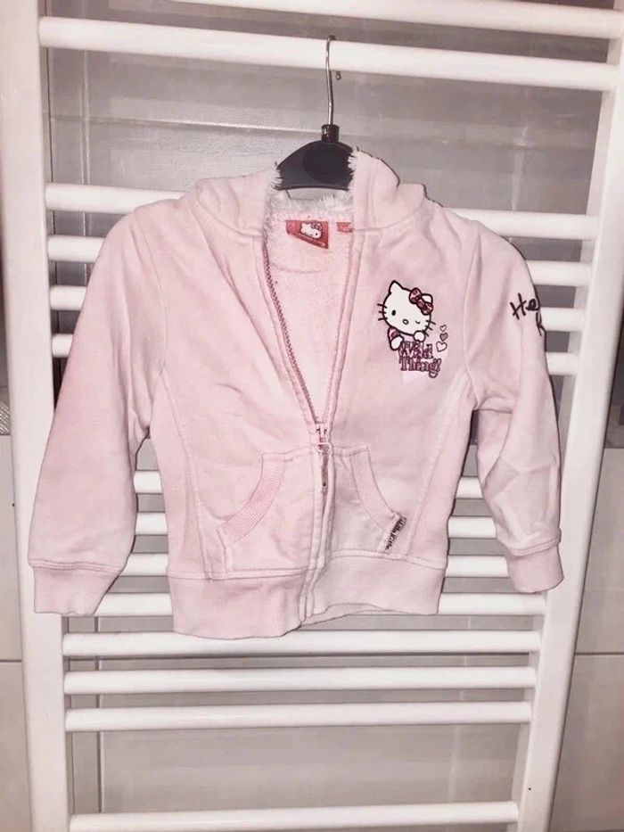 Veste Hello Kitty avec capuche et intérieur molletonné taille 4 ans en tbe (motif légèrement craquelé voir photo)à 5 euros