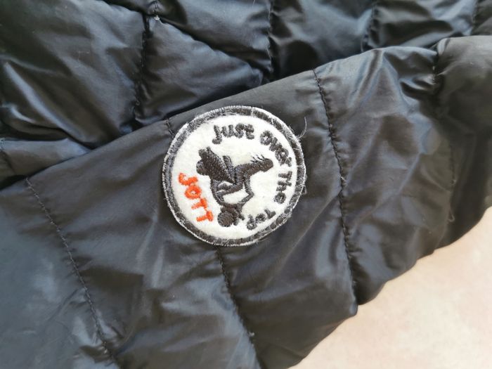 Doudoune noir marque JOTT, légère et chaude Présente des imperfections dues à l'usure Les plumes sont visibles au niveau de certaines coutures (voir photo), petit accroc au niveau de l'épaule gauche (dernière photo) Peu encore être portée, en vente car achat d'une neuve. Prix neuf: 165€ Prix de vente: 40€