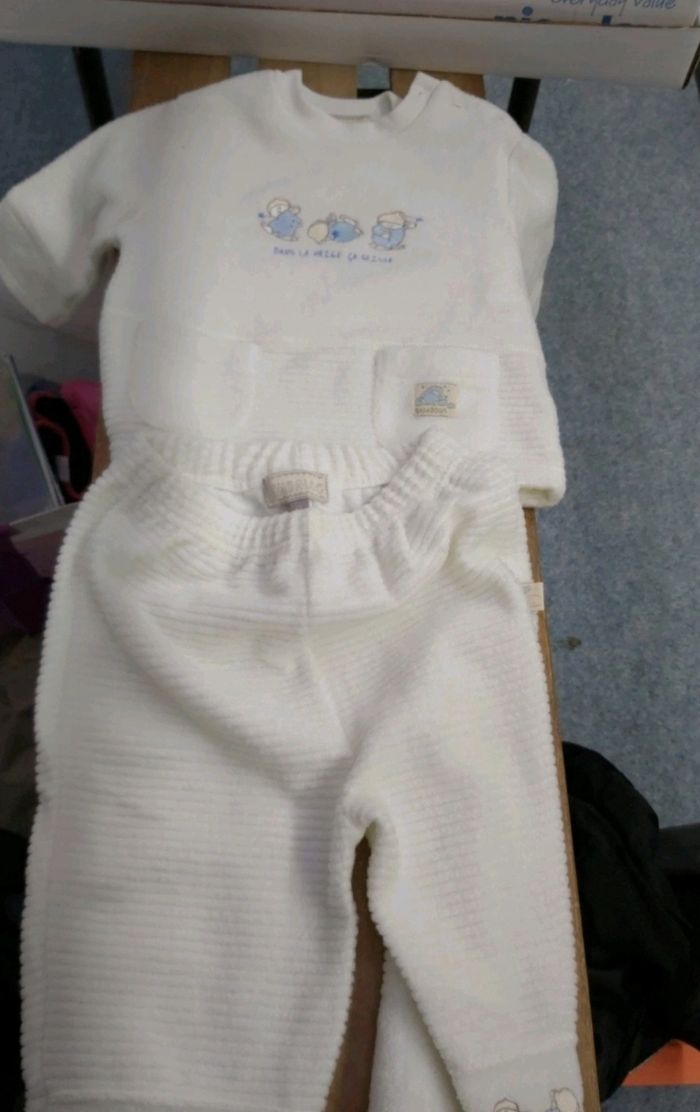 Ensemble pull + pantalon polaire blanche taille 12 mois