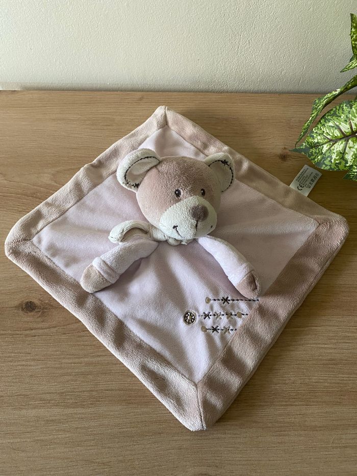 Doudou plat ours rose bordure beige écharpe écru simba toys